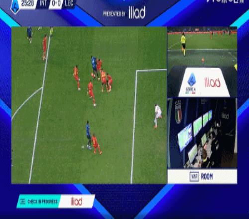 第27分钟,博尼禁区内倒地,裁判经VAR后没有判罚点球