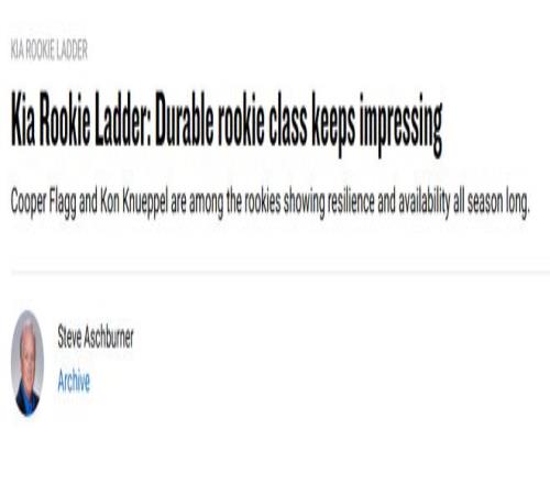 NBA官网新秀榜更新:弗拉格居首克努佩尔第2开拓者乐福升至第9