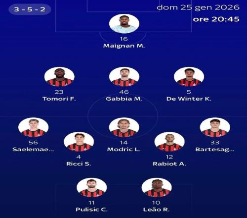 预告丨预测首发出炉,莱奥搭档普利西奇 米兰圈 2026-01-25 14:04:43 米兰圈北京时间1月26日凌晨3点45分,意甲第22轮,米兰将在客场对阵罗马。意大利天空体育发布了本场比赛米兰的预测首发: 意甲 米兰 罗马 天空体育 莱奥·巴普蒂斯唐 克里斯蒂安·普利西奇 上一篇: 博尼:我们8分钟就逆转了比赛,这说明了我们的强大 下一篇: 返回列表